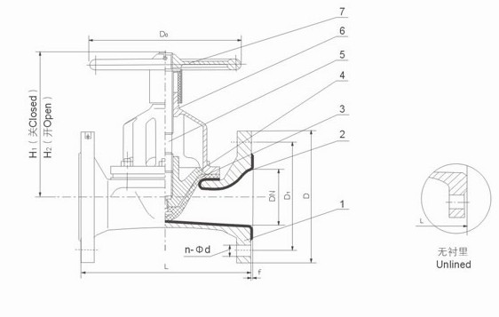 附3、視膠隔膜閥的閥體內腔表面視復有廳供選擇的多種橡膠。因此具有優越的耐腐蝕的特點。