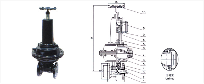 4. 閥體與蓋被中間隔膜隔開,使得隔膜上方的閥蓋,閥桿等零件不受介質侵蝕;