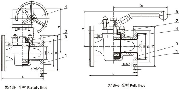 X43Fs襯氟旋塞閥專用于控制腐蝕性或強腐蝕性介質,閥體內 腔表面覆有可供選擇的各種氟塑料,適用于不同 工作溫度和流體管路,具有強度高、耐腐蝕性能好的特點。