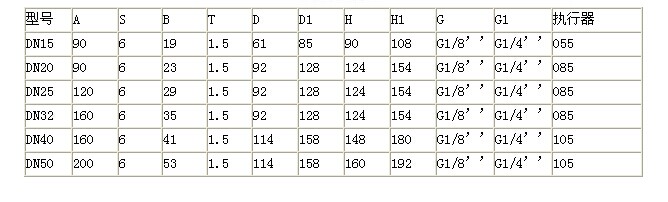 閥體尺寸 DN8-DN10 DN15 DN20-DN32 DN40-DN50