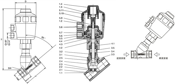 1.1閥體 3.1螺紋連接件 5.5活塞